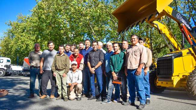 El intendente municipal, Dr. Facundo López, presentó en la puerta del municipio la nueva maquinaria que será destinada al mejoramiento y realización de calles en todo el Distrito, adquirida con un crédito obtenido en el Banco Provincia de 25 millones de pesos.