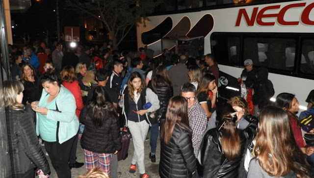 El intendente municipal, Dr. Facundo López, recibió junto a un numeroso grupo de padres en la puerta del municipio a parte de la delegación de chicos y profesores que llegaron a la nochecita de Mar Del Plata, tras la estadía por las finales de los 26º Juegos Bonaerenses.