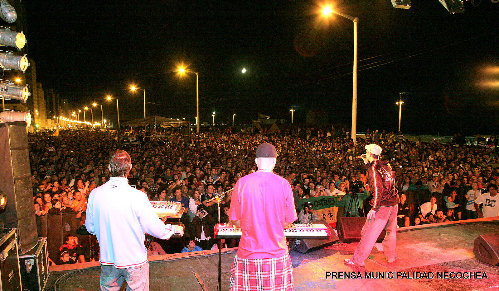 Ante una multitud y con el marco de una típica noche de verano en la amplia avenida costanera, Necochea fue partícipe el viernes de un recital a puro reggae de la mano de Los Cafres, y bajo una iniciativa de la provincia que acercó un mensaje de concientización. Las más de 15 mil personas vibraron con cada canción y siguieron los temas más conocidos como «Bastará», «Casi que me pierdo» y «Si el amor se cae», entre otros, gratis y al aire libre sobre la Avenida 2 frente al Complejo Casino. La velada musical estuvo encabezada por el Intendente Municipal, Prof. Horacio Tellechea, quien hizo de anfitrión y recibió al titular del Organismo Provincial para Desarrollo Sustentable (OPDS), José Molina y al ex baterista de Soda Stereo, Charly Alberti, quienes ofrecieron una charla de concientización en el marco del programa que lleva adelante la cartera provincial y la fundación R21. También estuvo presente el presidente del ENTUR, Cristian Corral. La banda dedicada al reggae roots formada en Buenos Aires, debutó en 1987 y desde entonces editó once discos. Está liderada por Guillermo Bonetto e integrada por Claudio Illobre (teclado), Gonzalo Albornóz (bajo), Sebastián Paradisi (batería), Manuel Castaño (saxo), el necochense Guillermo «Willy» Rangone (trompeta), Andrés Albornóz (teclado), Víctor Raffo (guitarra) y Deman Marcelino (Guitarra).