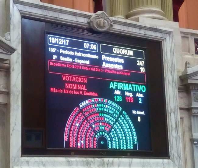 En cambio, votaron en contra el Frente para la Victoria, el Frente Renovador, Peronismo para la Victoria, Libres del Sur, el Frente de Izquierda y parte de Argentina Federal, como el ex titular de la ANSES Diego Bossio.
