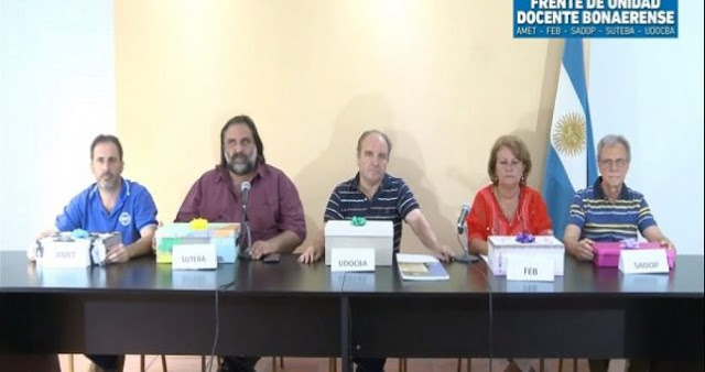 El FUB Frente de Unidad Docente Bonaerence hizo un balance donde @LaFEB @SUTEBAProvincia @Sadop @udocbacentral y expresaron el constante trabajo para mejorar las condiciones de los docentes @mariuvidal @gzinny pic.twitter.com/QfRCE3EqA8— RicardomLuna (@LunaRicardom) 1 de enero de 2019