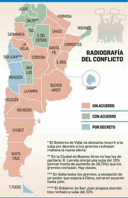 Algunos de los presentes subrayaron además la necesidad de evaluar el conflicto de manera provincial y nacional, más allá de las particularidades y del nivel de adhesión a las medidas de fuerza evidenciados en nuestro distrito. En este sentido, recordaron que de las 23 provincias que componen la República Argentina, 14 aún continúan sin alcanzar un acuerdo con sus gobiernos respectivos.
