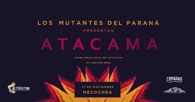 LOS MUTANTES DEL PARANÁ llegan a Necochea, y lo hacen presentando su 3er disco de estudio: «ATACAMA» en el marco de la #GIRAMUTANTE traen este nuevo show el sábado 17 de noviembre, en ESPACIO CULTURAL PARÍS (Calle 59 Nº 2868) en un evento que promete baile y diversión en el ámbito de una Fiesta Popular con Barra Amiga!