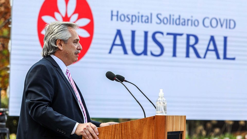 El presidente Alberto Fernández destacó hoy que «los que más necesitan y los que más tienen pueden unirse junto al Estado para hacer una sociedad más justa», al encabezar la inauguración de un «hospital solidario» destinado a pacientes sin cobertura médica, montado en el predio del hospital privado Austral, en el partido bonaerense de Pilar.