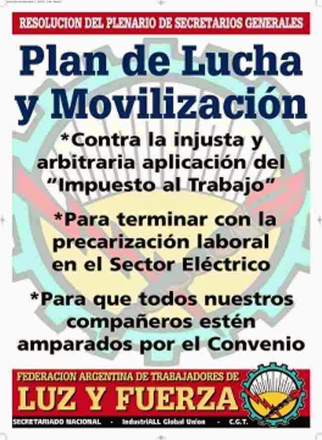 Las razones de la medida de fuerza, según explicó el titular de la Seccional local de Luz y Fuerza, Daniel Lazarte, son, “terminar con la precarización laboral en el sector, no al Impuesto a las ganancias en los salarios y por la aplicación total del convenio colectivo de trabajo”.