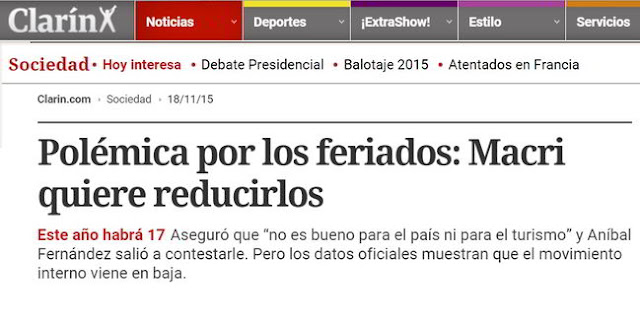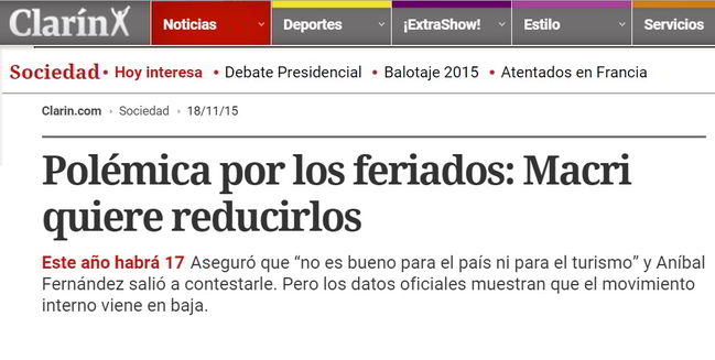 La idea de Macri de reducir los feriados no es nueva. Hace más de un año, el jefe de Gobierno porteño había planteado que era “un disparate” la cantidad de días no laborables del calendario argentino. “Es un disparate eso de querer batir records de feriados, no favorece a nadie”, sostuvo en mayo de 2014 el líder de PRO, quien aseguró que es una “gran mentira” que los feriados puentes y modificables beneficien al turismo.