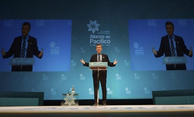 Mauricio Macri particioó en Chile de la cumbre de la Alianza del Pacífico en carácter de observador y dio un discurso en el que señaló que «el Mercosur debe finalizarse y salir del descongelamiento para converger en el futuro en un acuerdo de libre comercio» con el bloque regional que integran Perú, Colombia, México y el país anfitrión.