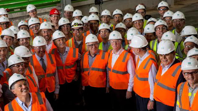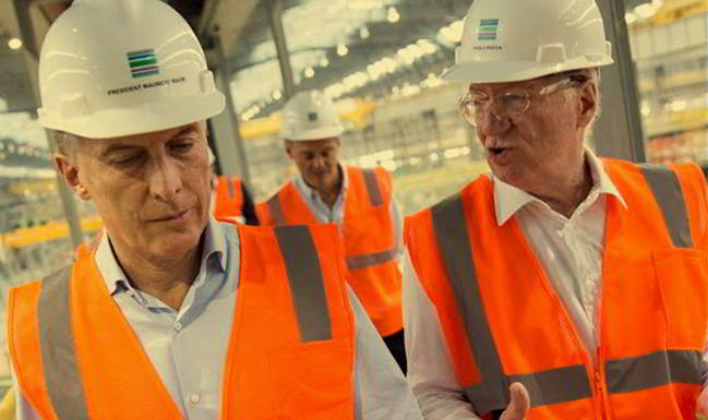 Lo adelantamos el lunes, fue la inauguración de Tenaris BayCity, el mega-emprendimiento realizado por Techint en Texas, Estados Unidos. El presidente Macri con un casco que rezaba: “President Mauricio Macri” recorrió junto a Paolo Rocca las instalaciones de la planta que demandó una inversión de U$S 2000 millones por parte del grupo argentino y se sacó fotos con “very happy employees” (empleados muy felices). Lo que fue una foto soñada por los equipos de prensa de Casa Rosada lamentablemente tuvo lugar en tierras del norte y no en nuestro país donde la falta de puestos de trabajo es una constante.