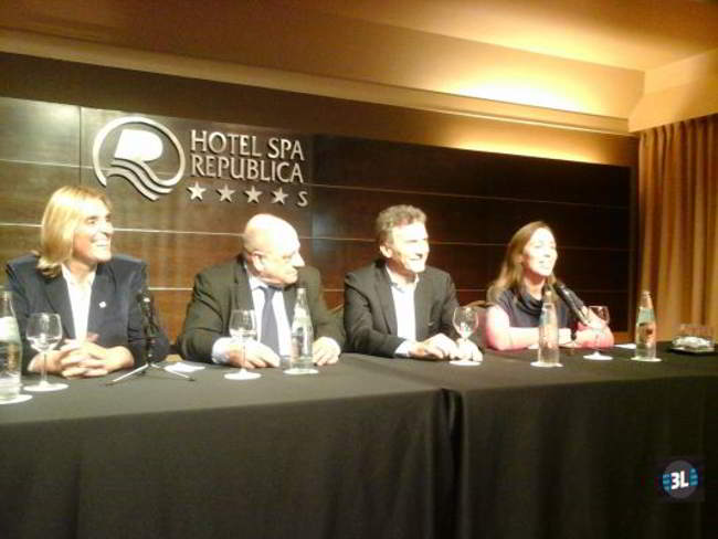 Acompañado por la precandidata a gobernadora de la provincia de Buenos Aires, María Eugenia Vidal y sus dos precandidatos por la intendencia de General Pueyrredon, Vilma Baragiola y Carlos Arroyo, Macri brindó un rueda de prensa en un hotel de la zona céntrica de Mar del Plata.