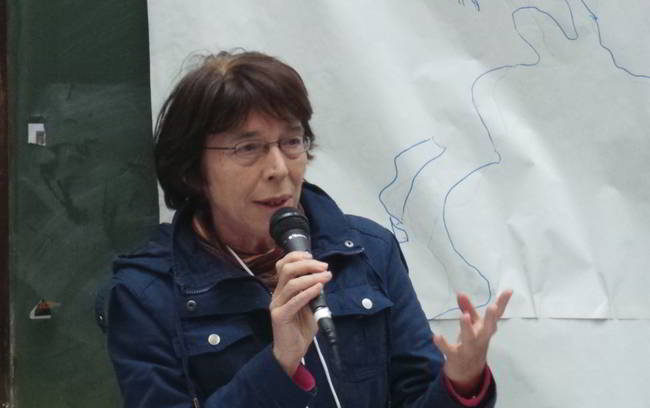 Se trata de Sally Burch, Directora Ejecutiva de ALAI y con destacada trayectoria en diversos medios y organizaciones de la socidad civil. Venía a participar de la cumbre de la OMC.