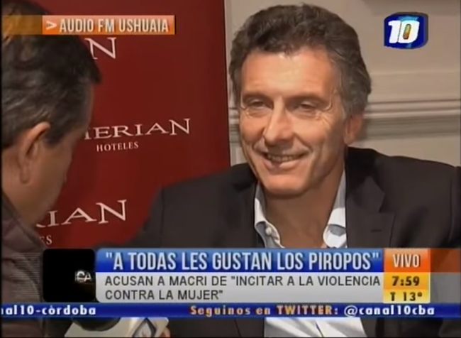 Mauricio Macri, expresó su opinión sobre los piropos hacia las mujeres, mientras brindaba una entrevista a una radio de Tierra del Fuego. «A todas las mujeres les gustan que les digan un piropo, aunque sea qué lindo culo tenés», explicó el líder del PRO.
