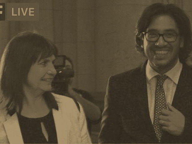 Apenas le dio la mano a Estela de Carlotto con un escueto: “Buenas tardes” y esperó afuera a Bullrich para ir juntos a la conferencia de prensa convocada en el cuarto piso, donde los esperaban todas las cámaras de los principales canales.