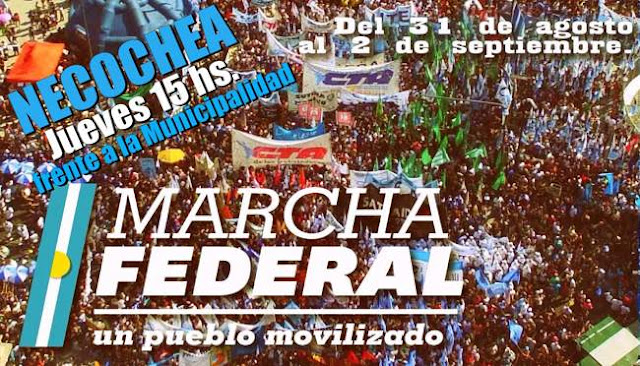 La columna partió en esta jornada desde la ciudad de Rawson, provincia de Chubut, pasando por la ruta 3, por Viedma, Bahía Blanca, Tres Arroyos y llegaría alrededor de las 17 horas a nuestra ciudad. Los gremios y agrupaciones políticas y sociales convocantes se concentrarán desde las 14:30hs frente a la Municipalidad de Necochea.