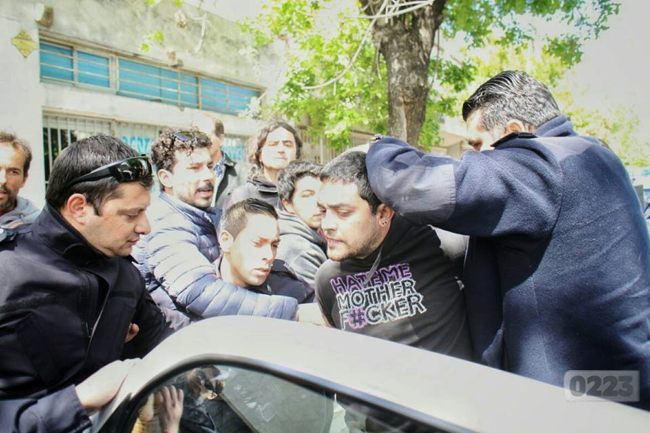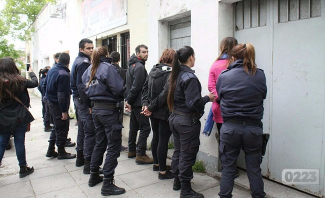 Momentos de tensión se viven en la sede del Frente de Izquierda en Mar del Plata, de Jujuy 2928: cerca de las 11 unos 30 efectivos de la policía allanaron el local y esposaron a 6 militantes.