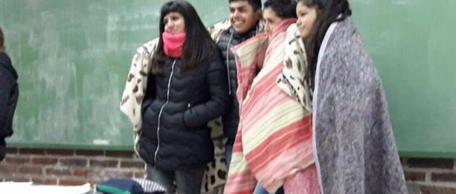 Van a la escuela con frazadas: Reclamaron calefacción y les respondieron que en septiembre se soluciona