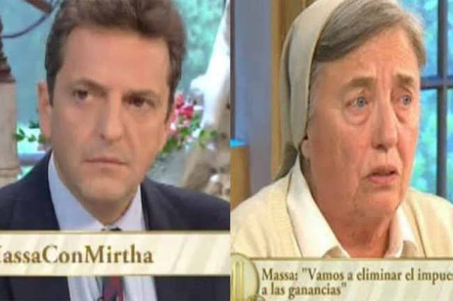 La monja Marha Pelloni, otra de las invitadas, lo interrumpió al afirmar que las propuestas del candidato de UNA respecto a sumar a las Fuerzas Armadas a la lucha contra el narcotráfico no es una solución. «No las tenemos preparadas para esas tareas (a las FA)», afirmó. Y agregó: «Usted tiene el tema de los narcos en los countries y Macri en las villas, ¿qué van a hacer?», le preguntó la Monja a Massa.