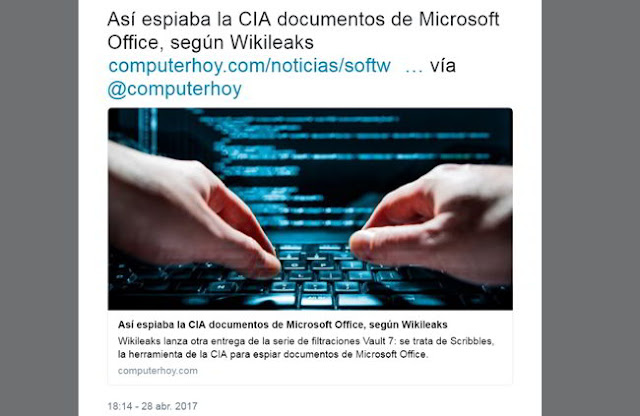 #WikiLeaks revela cómo la CIA espía Microsoft Office https://t.co/gTo9kKqYUH pic.twitter.com/OUH35r7MTx— teleSUR TV (@teleSURtv) 28 de abril de 2017