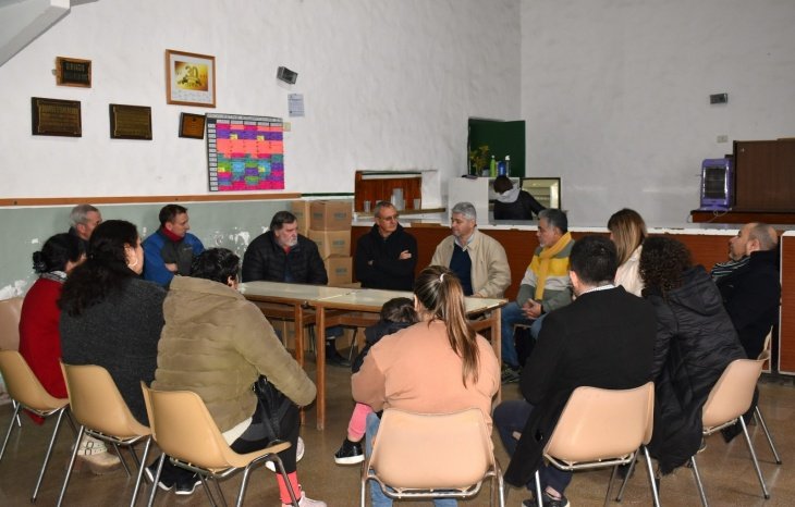 La primera reunión tuvo lugar en el CEF N° 63, donde se encontró con miembros de la Sociedad Española de Socorros Mutuos. Durante el encuentro, los anfitriones expresaron diversas inquietudes, las cuales fueron atentamente escuchadas por el precandidato y su comitiva.