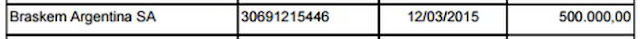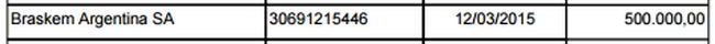 Establecer vínculos entre Odebrecht y la campaña electoral del PRO ni siquiera requiere de espías, megacausas internacionales ni arrepentidos. Sin ir más lejos, en la gran cena de recaudación de fondos para la campaña presidencial que Mauricio Macri realizó el 18 de marzo de 2015 en los salones de la Sociedad Rural, casi mil asistentes abonaron $50 mil el cubierto, lo que sumado a otros aportes, permitió recaudar más de $150 millones de pesos en una sola noche. Odebrecht fue una de las empresas que más dinero aportó de manera directa y a través de Braskem Argentina SA tal como expusimos desde El Disenso en nuestra investigación Odebrecht, aportante de campaña de Macri, pagó 439 millones de dólares a partidos políticos publicada el pasado 14 de enero donde a través de documentación oficial demostramos que el gigante brasilero no solo pagaba coimas para comprar voluntades, dentro de la ley también hacía sus apuestas. Su apoyo a Macri quedo inmortalizado en los estados contables del PRO 2015, donde a través de la química del grupo “Brasquem SA”, apórtó medio millón a la presidencia de Macri.