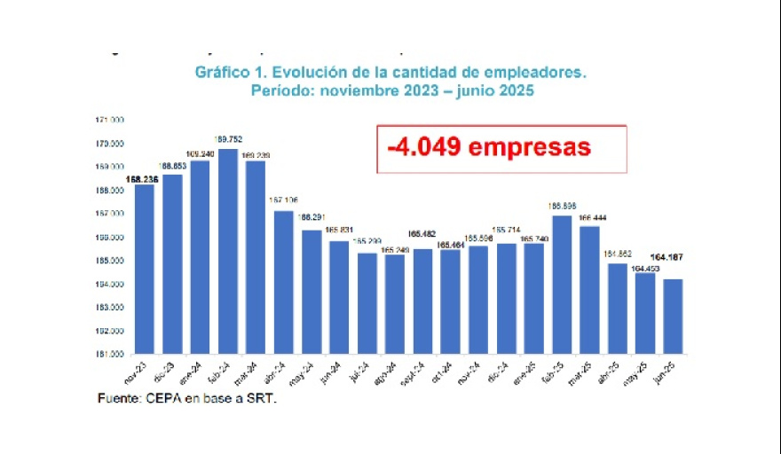 Se perdieron 4.049 empleadores en el período, con la construcción como sector más golpeado (-717).