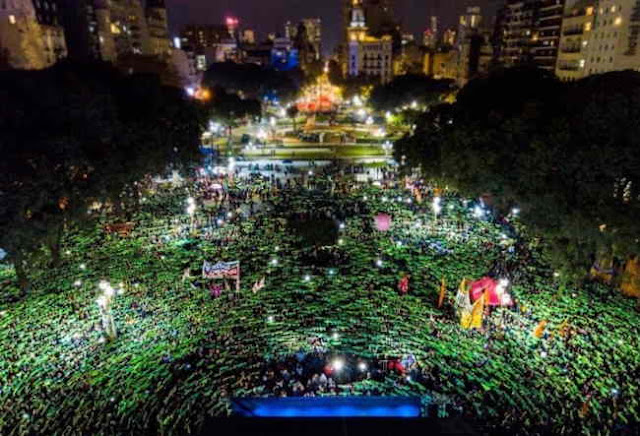De sur a norte y hacia todas las direcciones, se puede ver una marea verde que inunda las calles. De Salta a Tierra del Fuego, y en todas las provincias argentinas, millones de personas se movilizan mientras en el Senado continúa el debate.