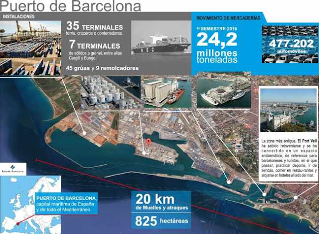 Los muelles de Barcelona registraron en el primer semestre de 2016 su máximo en el tráfico de mercancías al llegar a 24,2 millones de toneladas.