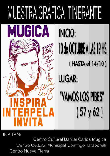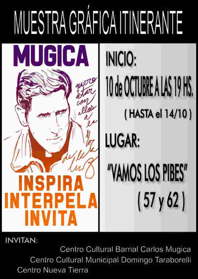 Este sábado 10 de octubre a partir de las 19 hs se dará inauguración a la muestra gráfica itinerante «Múgica, inspira, interpela e invita», en el local «Vamos los pibes», sito en calles 57 y 62.