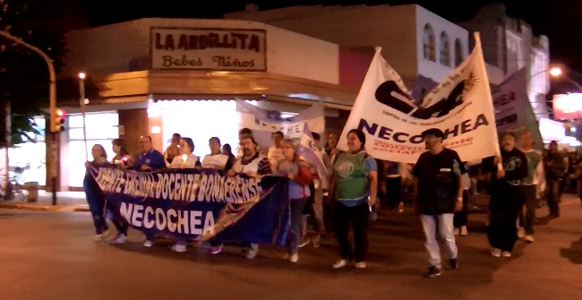 Se sorprendió más de uno en la tarde de este martes 26 de marzo: un numeroso grupo de docentes, estatales, judiciales se concentraron en la intersección de la 59 y 64 para marchar luego por las calles del radio céntrico de la ciudad de Necochea. La concentración se realizó en el marco del plan de lucha que llevan adelante los distintos gremios provinciales ante el exiguo aumento salarial otorgado unilateralmente por la gobernación.