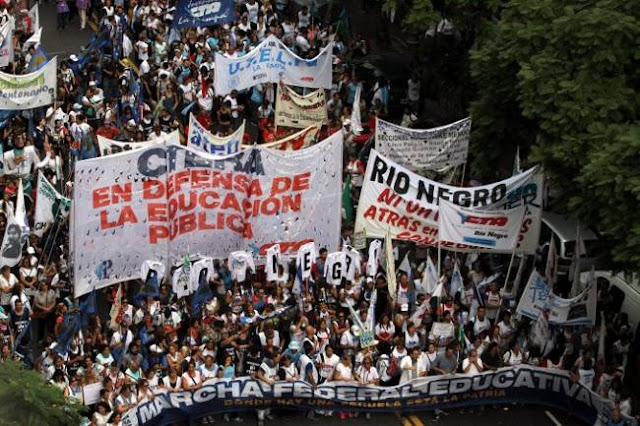 En tanto, el acto central que cerrará esa movilización está previsto para las 15, con discursos a cargo de Sonia Alesso, por la Confederación de Trabajadores de la Educación (Ctera); Sergio Romero, de la Unión Docentes Argentinos (UDA); Mario Almirón, del Sindicato Argentino de Docentes Privados (Sadop); Fabián Felman, de la Confederación de Educadores Argentinos (CEA); y Héctor Pedro Cova, de la Asociación del Magisterio de Enseñanza Técnica (Amet), las cinco confederaciones nacionales de docentes convocantes de la marcha.