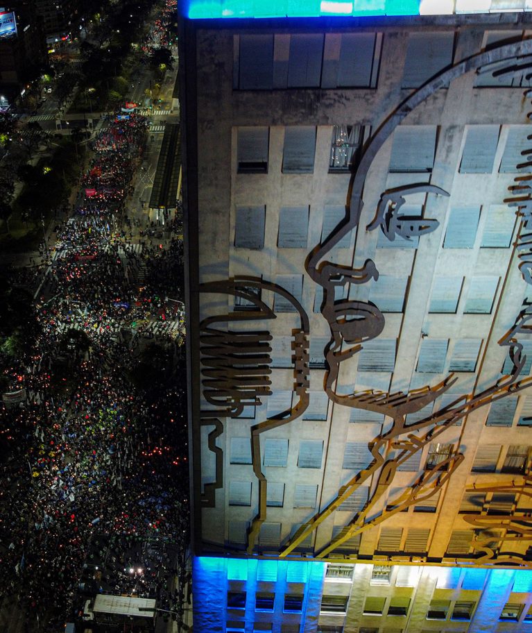 Un sector de la CGT encabezado por el dirigente camionero Pablo Moyano, la CTA de Hugo Yasky y el Frente Sindical para el Modelo Nacional realizaron una marcha de antorchas para recordar a Eva Perón a 70 años de su muerte y expresaron su apoyo al presidente Alberto Fernández, a la vicepresidenta Cristina Kirchner y su repudio a «los antipatria que quieren desestabilizar al Gobierno».