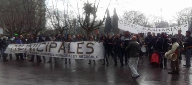 Afiliados al Sindicato de Trabajadores Municipales de Necochea (STMN), se movilizaron por las calles del centro de la ciudad en reclamo por el cobro desdoblado del sueldo, decisión adoptada por el Departamento Ejecutivo ante la falta de dinero.
