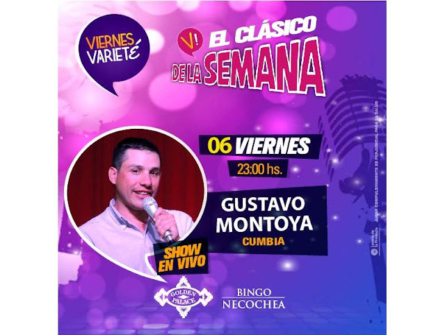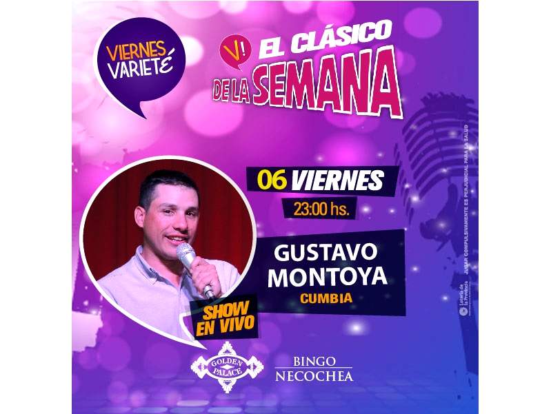 Hoy, a partir de las 23hs, Bingo Golden Palace te invita a disfrutar de un show en vivo cargado con la energía y la alegría del cantante local Gustavo Montoya.
