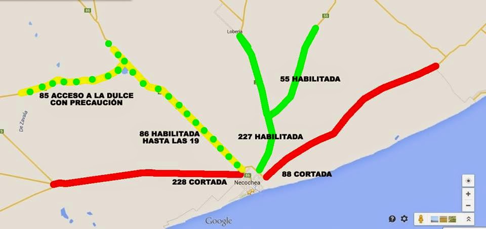 La Municipalidad de Necochea, a través de la Dirección de Defensa Civil, informa sobre el estado de las rutas en la región: