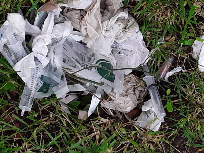 El material hospitalario apareció en la zona del patio de la Escuela Secundaria Nro 16, distante 100 metros del Hospital Emilio Ferreyra de Necochea.