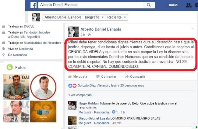 La detención de César Milani desató un sinfín de opiniones y reavivó debates que la sociedad creía superados. Uno de los oportunistas es el concejal Alberto Esnaola, representante del radicalismo y aliado del Partido Fe de Gerónimo Venegas.