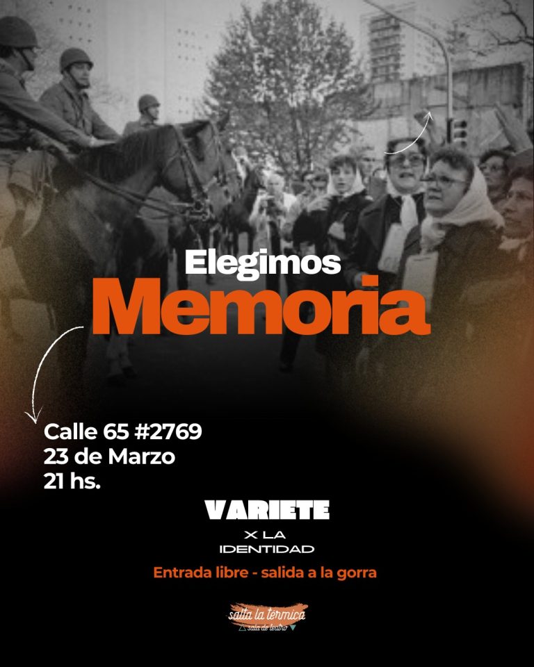 El domingo 23, la propuesta artística continuará con la varieté por la identidad “Elegimos Memoria”, a las 21 h en Salta la Térmica.