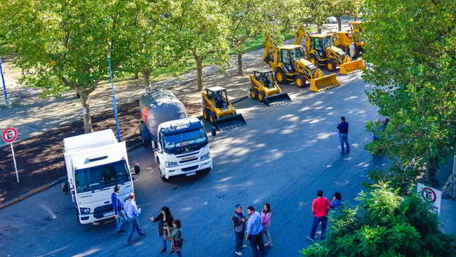 El jefe comunal observó cada una de las 13 nuevas maquinarias y vehículos (faltan llegar otras tres que completarán el parque vial en 16) que tras la presentación ya se encuentran trabajando en las calles del Distrito.