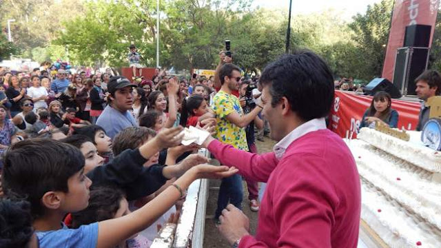 Durante los festejos por el 135° Aniversario de nuestra ciudad, el intendente Facundo López cortó una inmensa torta de cumpleaños que fue repartida entre las miles de personas que se acercaron al Parque Miguel Lillo para ser parte de la celebración. Además, hubo stands gastronómicos, asados, juegos y una gran variedad de espectáculos artísticos que tuvieron como broche de oro la presentación de Baglietto y Vitale.