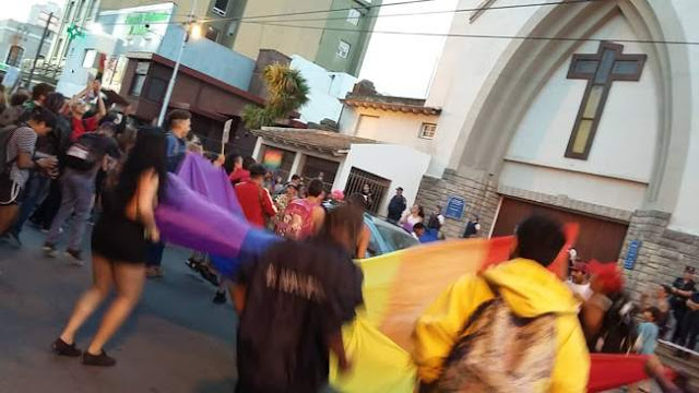 Los manifestantes recordaron los antecedentes de casos de pedofilia a miembros de la institución eclesiástica al momento de reclamar por la libertad de elección sexual y de aborto libre y seguro.