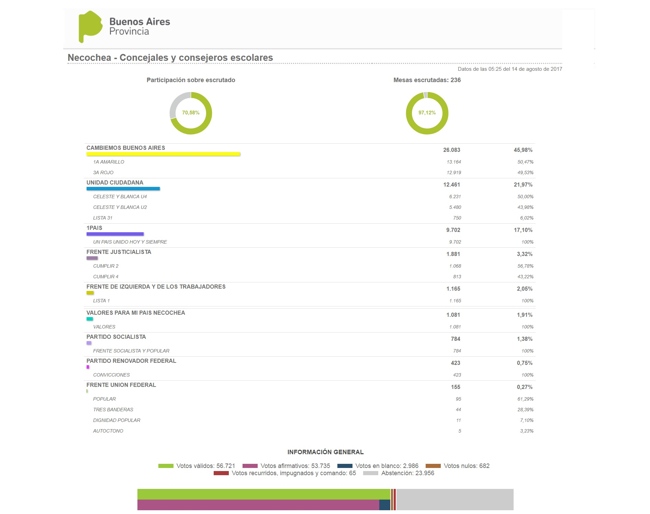 #NECOCHEA: TODOS LOS RESULTADOS HASTA EL MOMENTO PARA CONCEJALES Y CONSEJEROS ESCOLARES