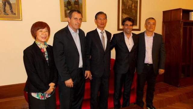 El intendente Facundo López recibió la visita de una comitiva encabezada por el embajador taiwanés Lien Sheng Huang, que se encuentra recabando en la región información de territorio para realizar un futuro asesoramiento sobre el tratamiento de la basura y la purificación del agua, entre otras temáticas referidas, en especial, al cuidado del medio ambiente