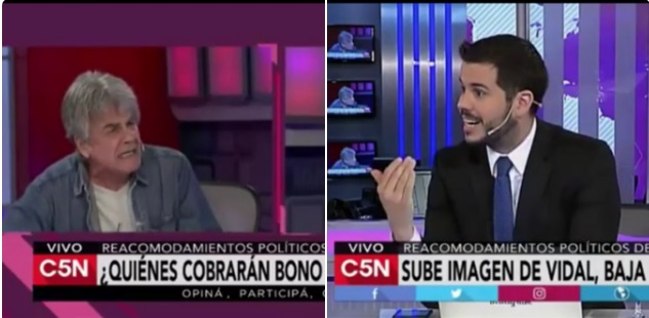 Primero intentó callarlo aduciendo “tenemos que hablar todos” y ante la insistencia del actor en sus afirmaciones, Nicolás Magaldi le “agradeció la presencia” en lo que por un momento tomó temperatura de ebullición, cuando el actor le espetó “debería indignarte el hambre y no la mala educacion”.