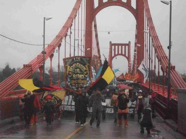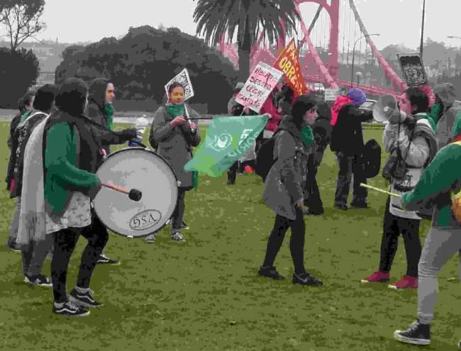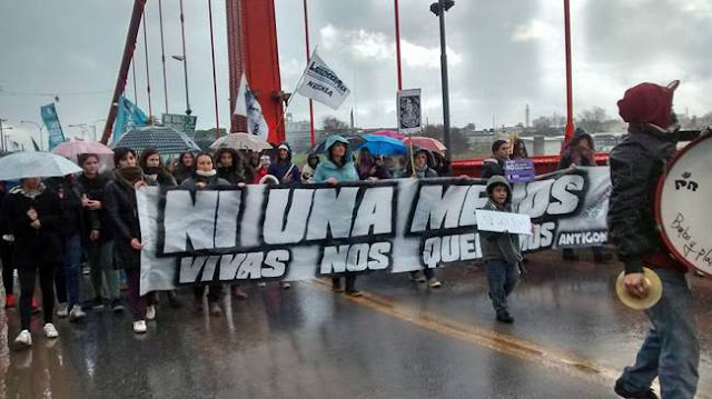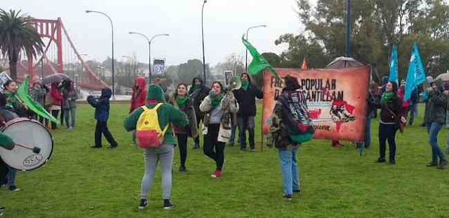Con entusiasmo militante y a pesar de la lluvia, decenas y decenas de jóvenes, mujeres y hombres, se concentraron en la tarde de este viernes 3 de junio en la rotonda del Puente Colgante, que une las ciudades de Necochea y Quequén.