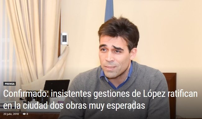 Aclaran que fue el Intendente Facundo López en persona quien gestionó obras para #NECOCHEA directamente con autoridades sin intervención de la gobernadora Vidal. pic.twitter.com/83NkN3PeSB— INFO EN PROCESO (@INFOENPROCESO) 20 de julio de 2018