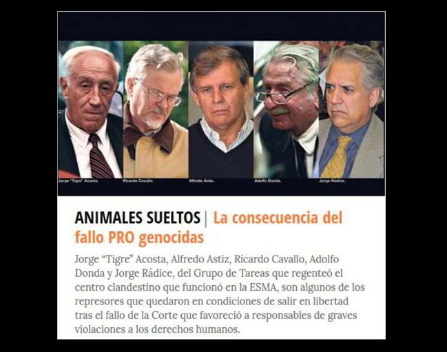Ahora condensan (apenas) la primera muestra de quienes quedaron en condiciones de obtener el beneficio de reducción de la pena por la ley del 2×1, que a pesar de que rigió en un período en que estaban libres y sin proceso judicial gracias a las leyes de impunidad, la Corte Suprema considera que les resulta aplicable por el criterio de la “ley penal más benigna”.