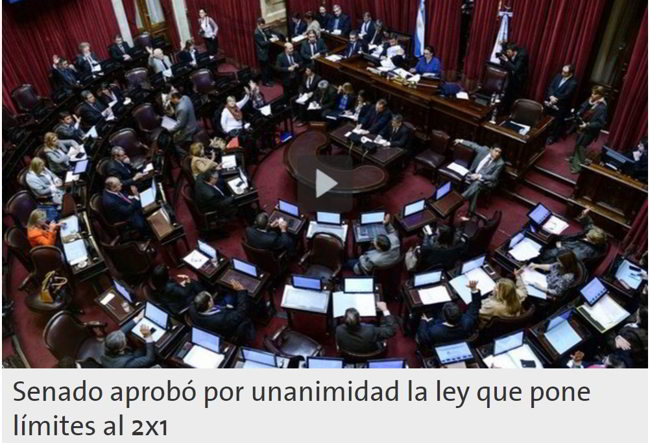 #NOAL2X1ALOSGENOCIDAS: EL SENADO APROBO POR UNANIMIDAD REFORMA A LA LEY DEL 2X1