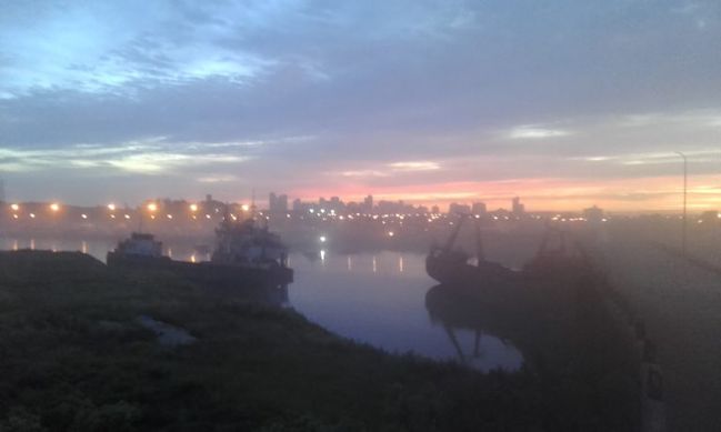 Ya llegando la tarde, al parecer, otro “error” hizo que el barrio se volviera un paisaje surrealista de niebla, que en realidad es polvillo, suspendida en el ambiente, ayudada por la falta de viento y baja presión que se vivió durante la jornada.