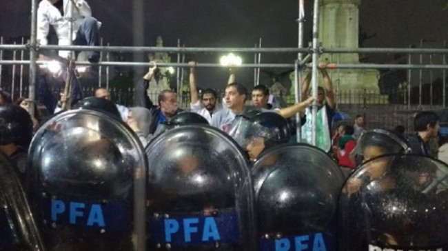 La Policía reprimió a los docentes que intentaban instalar una carpa. Pasadas las 20 de este domingo, efectivos de la Ciudad avanzaron sobre los docentes que estaban levantando una «escuela itinerante» para debatir el conflicto educativo. Tiraron gas pimienta y hubo cuatro maestros detenidos.