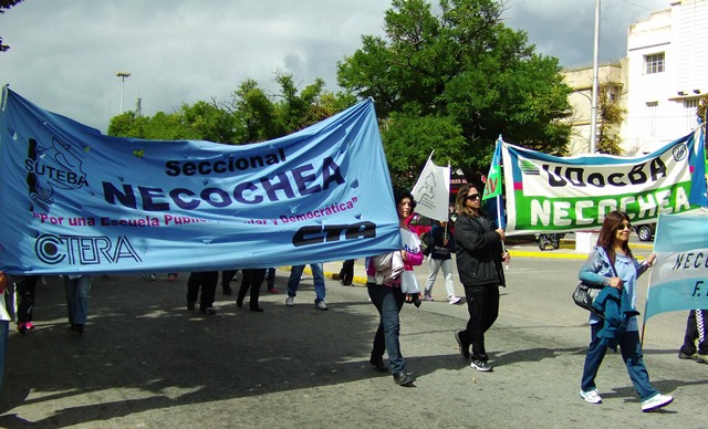 En la mañana de hoy los docentes agremiados en la FEB,UDOCBA y SUTEBA marcharon unificadamente por las calles de la ciudad de Necochea en reclamo por soluciones al conflicto en educación.