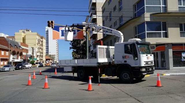Por pedido del intendente municipal, Dr. Facundo López, el área de Señalización continúa trabajando intensamente en la colocación de nuevas columnas, máquinas controladoras y luminarias LED en la ciudad.